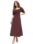 Avail 74% off on Shasmi Girl’s & Women’s Solid A-Line Ruched Puff Sleeve Maxi